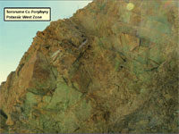 The Tororume project is located in southern Peru, one hundred and fifty kilometres northwest of Arequipa, 80 kilometres east of the Pacific coast and eight kilometres north of the Pecoy Cu deposit within the Southern Peru Costal Porphyry Copper Belt. The Property consists of 10,497 hectares owned 100% by Torion Mining S.A.C., a 100% owned subsidiary of Pembrook. HistoryThe Tororume porphyry system was discovered in 2013 by Pembrook while undertaking regional reconnaissance work within the Pecoy copper district in the Southern Peru Copper Porphyry Belt. This belt hosts major deposits such as the Cuajone Cu porphyry (Southern Peru Copper Corp.), the Toquepala Cu porphyry (Southern Peru Copper Corp.), Cerro Verde Cu porphyry (Freeport-McMoRan Copper & Gold Inc.) and the Zafranal Cu porphyry (Teck Resources Limited and Mitsubishi Materials Corporation). Exploration WorkTororume is a new discovery made by Pembrook and has never been drill tested. The Company has completed geological mapping, geochemical (rock- channel) sampling and geophysics (airborne magnetics, ground IP/resistivity). Geology- MineralizationThe Tororume porphyry system is three time larger than the Pecoy Porphyry system. It stretches over an area of two kilometres by five kilometres. The porphyry style mineralization intrudes the Cretaceous Coastal Batholitic granodiorite and basement gniesses. Copper, molybdenum and gold mineralization are present within granodiorite, basement gneiss and several Quartz Feldspar porphyry mineralized zones that exhibit strong porphyry-style alteration and quartz stockwork development. Multiple "centres" are present on the property with the best target to date a 250 metre by 400 metre West Potassic-altered zone in which 47 of 49 samples collected from this area returned >0.1% copper with the majority containing from 0.15% to 0.60% copper. This zone is covered by a thin, post-mineral, volcanic cap to the east and by debris to the south, and remains open in those directions and at depth. A second copper zone (North Phyllic Zone) is located 500 metres north of the West Potassic Zone and is characterized by quartz-sericite alteration (phyllic style) and contains multiple +0.1% copper to a high value of 15.6% copper associated with Chalcocite and malachite oxide mineralization. This zone exhibits substantial leaching at surface and covers an area measuring 800 metres by 1,000 metres. A third porphyry centre (East Potassic Zone) measuring 700 metres by 1,000 metres and with strong phyllic (quartz-sericite-pyrite) and potassic (magnetite-biotite) alteration is located east of the West Potassic Zone. The ground geophysical surveys carried out over the West and East Potassic zones suggests that they may link and are part of the same system. Surface RightsThe two permit areas on the Tororume project are on Federal land. The Company has submitted an application to acquire the surface rights and received a lease of Surface Rights from the government in 2017. Drill Program 2017The Phase 1 drill program will consist of 12 holes targeted across the West and East Potassic Zones. The first of two drill permits has been received and drilling on Permit 1 is scheduled to begin at the end of July starting with the testing of the East Potassic Zone. |